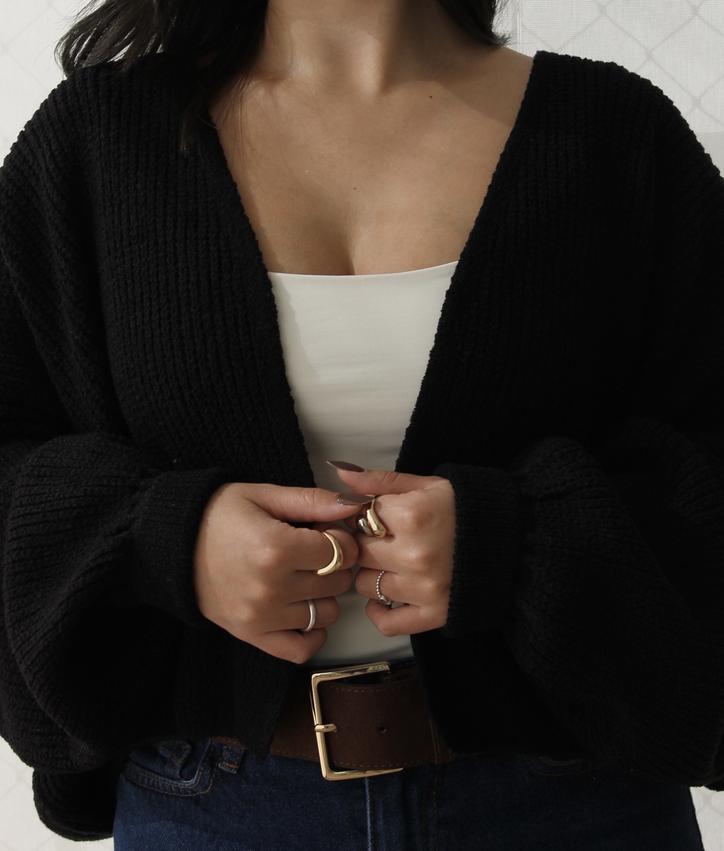 Casaco manga longa curto confeccionado no tricot em fio mousse mais macio e encorpado, tem modelagem ampla, mangas bufantes e caimento leve.